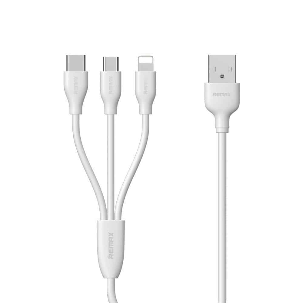 Кабель Remax 3in1 Micro, Type-C, Lighting, MicroUSB Data/Charge 1m, White (RC-109TH-WHITE)