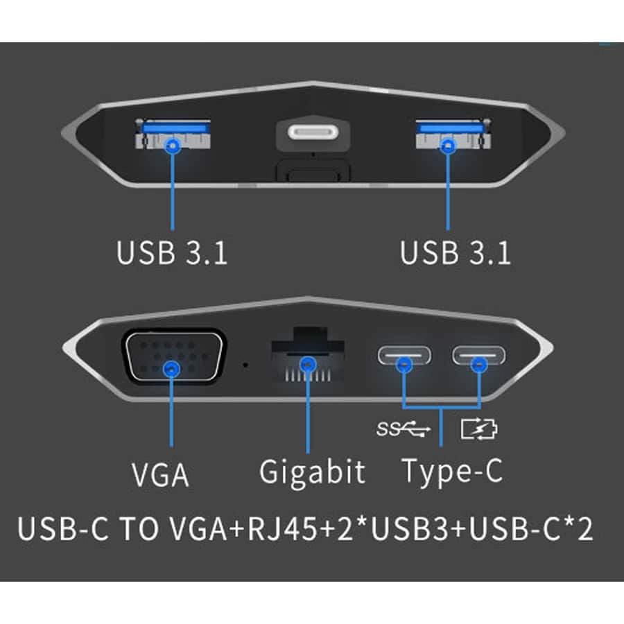 USB-хаб Upex USB Type-C – USB Type-Cx2/Ethernet/VGA/USB 3.1×2 Gray (UP10166)